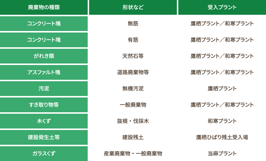 産業廃棄物の中間処理業務。 |